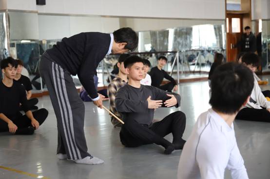 上午9点,音乐学院艺术楼8770舞蹈教室内热闹非凡。曹诚渊老师在此为音乐学院舞蹈系学子开展了专家实践课。他首先向同学们详细讲解了什么是现代舞以及现代舞与传统舞蹈的不同之处。强调了在现代舞训练中,运用丹田的重要性。随后,他将理论与实践相结合,以身示范,为同学进行了进一步的舞蹈动作纠正。