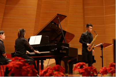 音乐会上半场以《咏叹调》和《小查尔达什》两首经典开场。之后,廖浩凌同学又演奏了博尼改编的《卡门幻想曲》。这首曲子对演奏者技术方面的要求较高,涉及到了循环吸气、双吐等多种技术。丰富的前奏、著名的哈巴涅拉、加快跑动的两次变奏、快速的终曲,让观众听到了一种变化多样的萨克斯管版卡门。