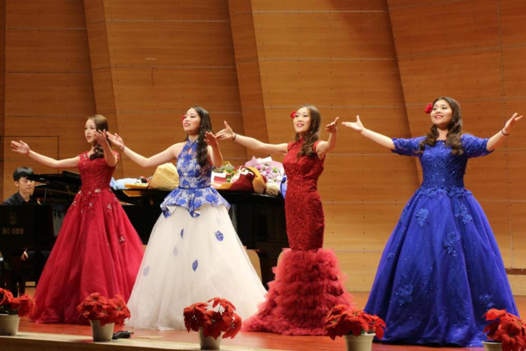 演出中同学们不仅发挥出了平时所学到的技巧,并且歌声极富感染力,此外他们对于歌剧内容的表演也使得音乐会增色不少,也可看出通过平时的学习,他们对于歌剧唱段的把握能力日渐娴熟。他们将一首首中外艺术歌曲和歌剧唱段精彩地演绎给了现场的观众,现场气氛十分热烈,观众情绪高涨,音乐会现场不时爆发出雷鸣般的掌声。音乐会最后在何斌副教授与全体参演学生共同演唱歌剧《蝙蝠》选段《笑之歌》中拉下帷幕,将整场音乐会推向了高潮,音乐厅又一次响热烈的的掌声。