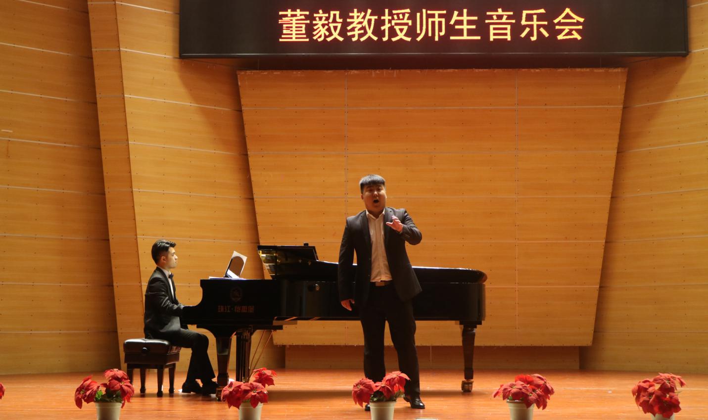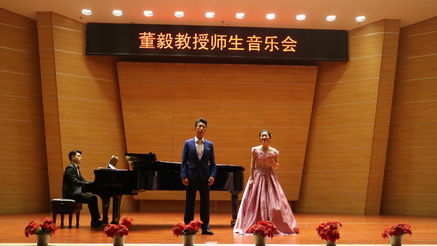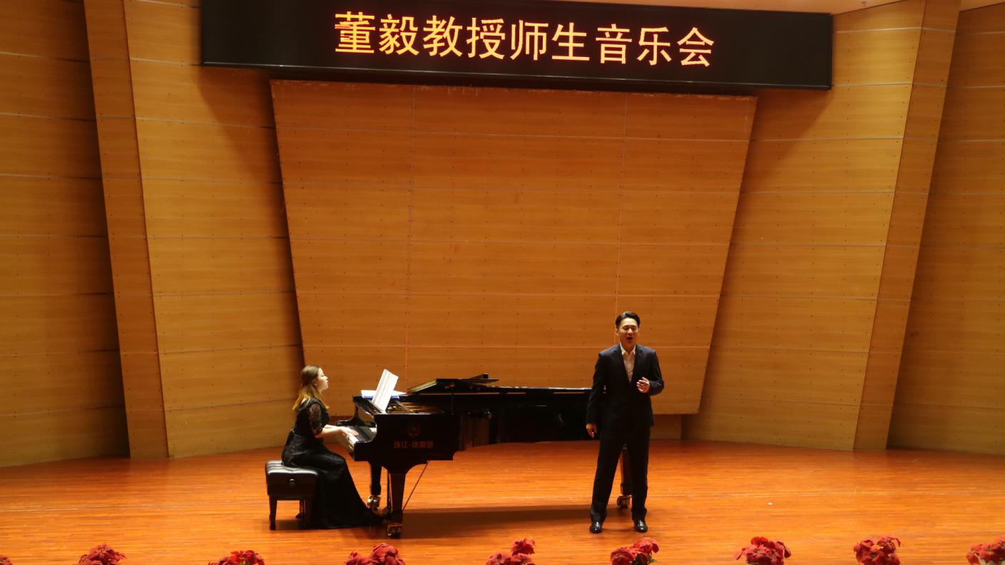 音乐会最后在董毅教授与全体参演学生共同演唱的《告别时刻》中拉下帷幕,将整场音乐会推向了高潮,音乐厅又一次响热烈的的掌声。演出结束后,董毅教师还对每位同学的表现给予了肯定,并感谢了三位钢琴伴奏。到此,董毅教授师生音乐会圆满结束。