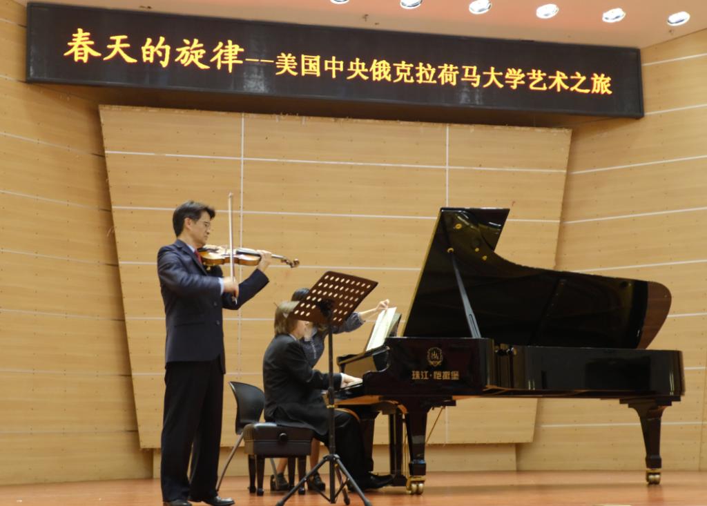 2018年4月19日晚上7点30,PA视讯官网“春天的旋律——美国中央俄克拉荷马大学艺术之旅”音乐会在校友会堂音乐厅拉开帷幕。本次音乐会由美国中央俄克拉荷马大学小提琴教授朱鸿博士及俄罗斯杰出的钢琴音乐家梵乐希·库勒雪夫教授共同为大家献上这场精彩绝伦的视听盛宴。PA视讯官网党委书记鲁福崇、副院长孙伟及美国中央俄克拉荷马大学音乐学院院长Brian Lamb列席了本次音乐会。