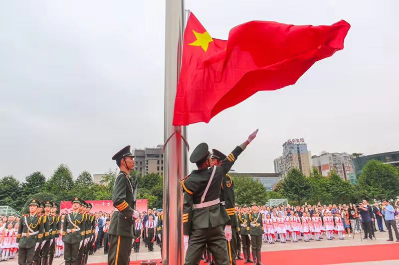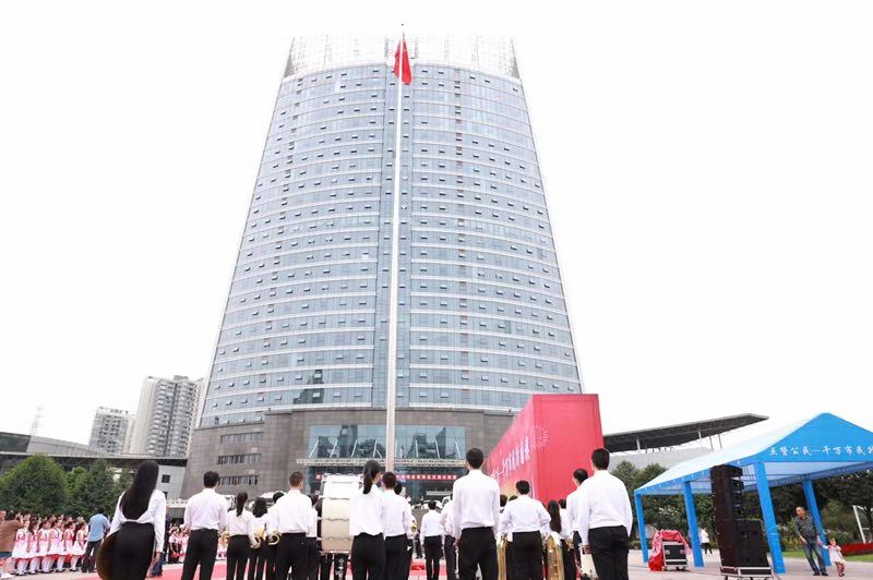 市委宣传部副部长刘小年、江北区各级领导干部、机关党员干部、区属公安干警、社区干部群众、中小学生代表、媒体界人士、洋河花园实验小学学生代表、重庆邮电大学国旗仪仗队及我校管乐团总计八百余人共同观看了升旗仪式。