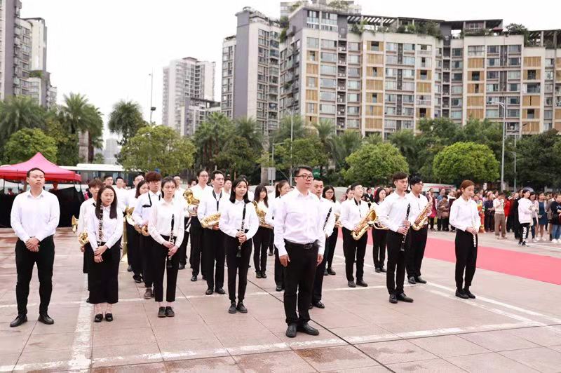 五星红旗迎风飘扬,管乐歌声响彻四方。9月27日,我院音乐学院管乐队应重庆市委宣传部、重庆市江北区人民政府的邀请,为江北区人民政府广场举行的“点赞公民——千万市民升国旗”活动演奏《国歌》及《歌唱祖国》。