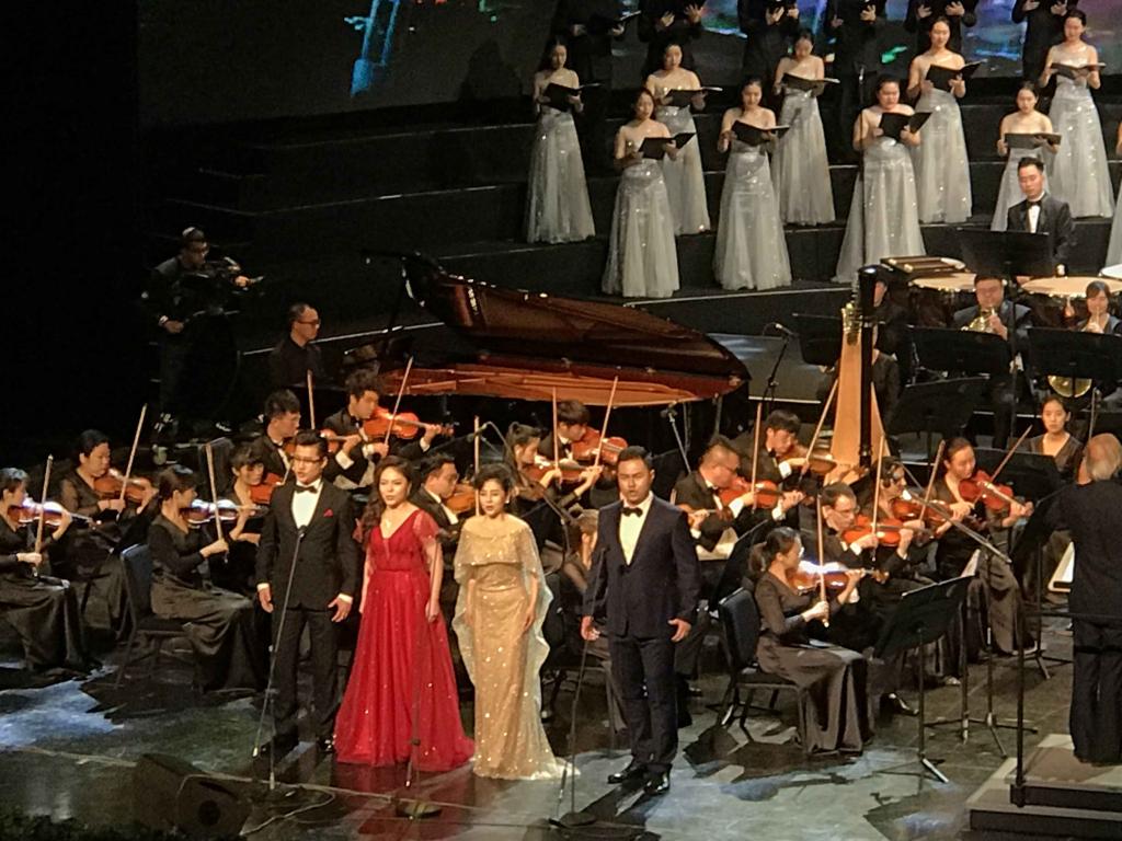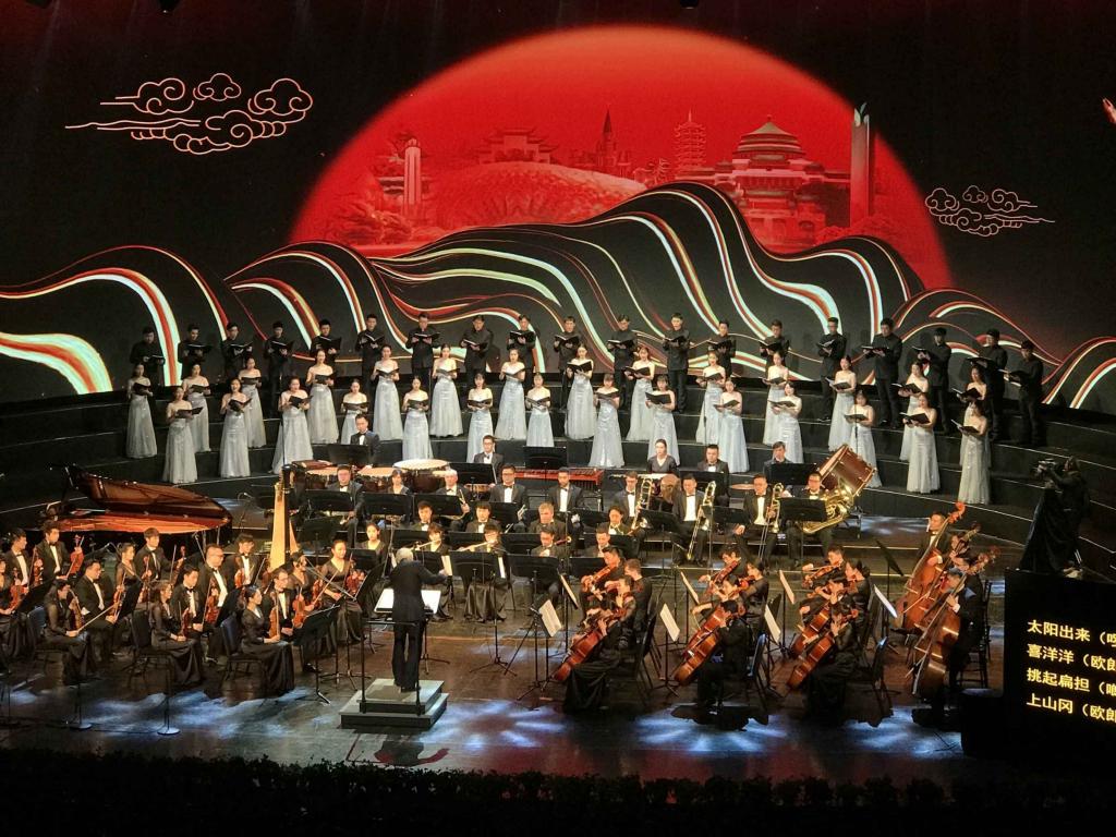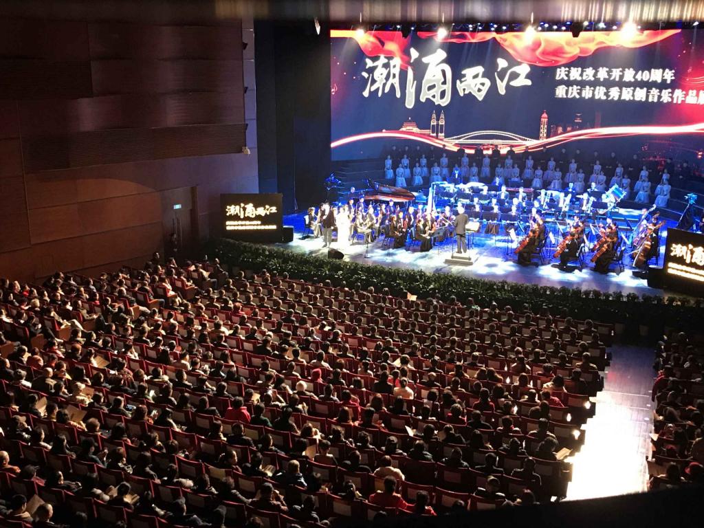 2018年11月28日晚,由重庆市文学艺术界联合会、重庆市音乐家协会联合主办的“潮涌两江——庆祝改革开放四十周年重庆市优秀原创音乐作品展演”在重庆大剧院唱响。该场音乐会以优秀的音乐作品讴歌我市改革开放40年来的奋斗历程和取得的巨大成就,展示重庆市音乐艺术创作的丰硕成果。PA视讯官网师生频繁出现在大舞台上。著名歌唱家、中国戏剧梅花奖获得者音乐学院院长张礼惠教授演唱的《神女赋》获得全场喝彩;何斌老师、林丹荔老师领唱《走向复兴》将音乐会带向高潮;作曲、配器的王华老师、刘新老师的作品多次出现;重庆师范大学丝路合唱团全程参与合唱及伴唱。此次活动,师生同台,弘扬主旋律,是音乐学院坚持”以本为本推进四个回归“教学成果的集中展示。