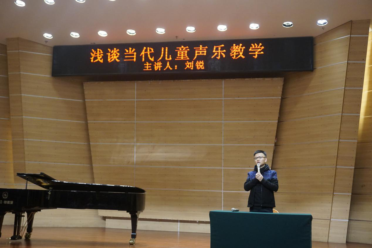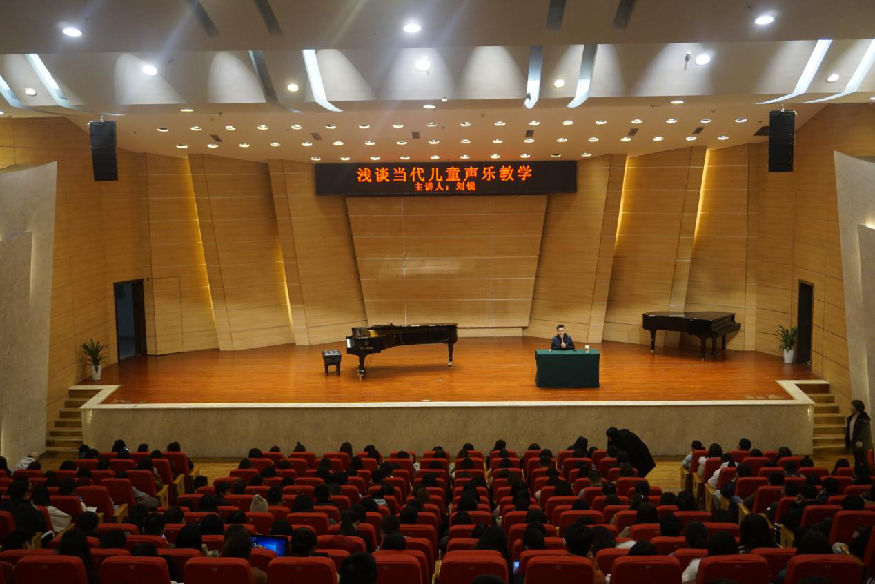 2018年12月2日星期日晚19:00,“浅谈当代儿童声乐教学”讲座在重庆师范大学校友会堂开展。此次讲座有幸邀请到刘锐老师作为主讲人,除了校内学生,许多中小学老师也慕名前来,现场座无虚席。