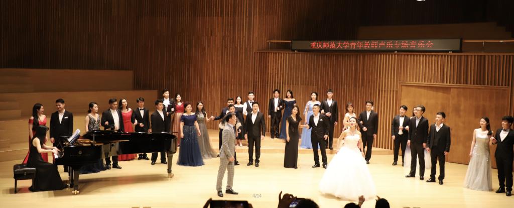 为全面落实重庆师范大学第三次党代会精神,深入推进音乐学院内涵式发展,强化教学质量,2019年音乐学院以“三春湖音乐季”改革为契机,尝试“产、学、研”的有机结合,实现“讲台、舞台与科研平台”三者联动机制。2019年音乐学院联手国泰大剧院,将“三春湖之韵系列音乐季”当中的精品节目,逐渐搬上重庆市的舞台,接受市场对于教学质量、师资水平以及人才培养质量的检验。2019年5月至6月期间在国泰大剧院分别上演了《乐器专场音乐会》、《青年教师专场音乐会》和《献礼祖国70华诞——“张礼慧和她的儿女们”声乐专场音乐会》。音乐学院青年声乐、器乐专业技能教师在中国戏剧梅花奖得主张礼慧院长的带领下,登上重庆市的舞台,演绎40多首中外作品,接受来自市场和社会的检验。音乐学院青年教师们用精彩的演出、扎实的专业知识、精湛的表演技能诠释新时代高校教师的使命与职责。“有理想信念、有道德情操、有扎实知识、有仁爱之心”,是音乐学院全体教师的使命与责任;立德树人,为学生插上理想的翅膀,成为学生的榜样更是每个高校教师的人生理想。