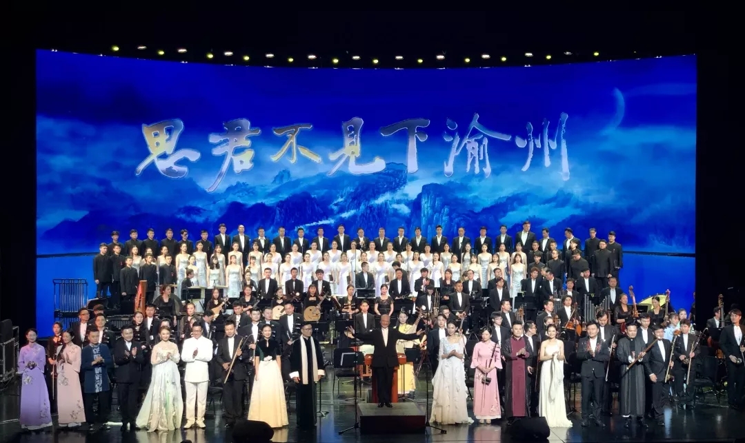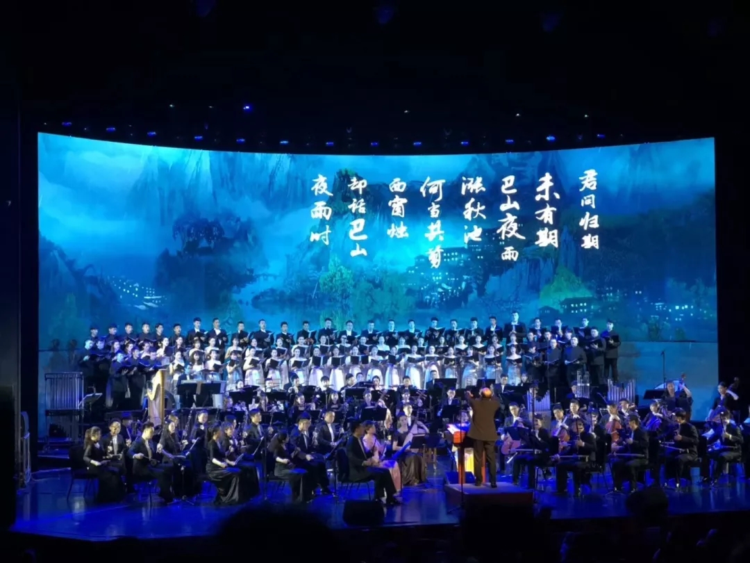2019年6月23日晚7:30,由重庆日报、重庆演艺集团联合打造的历代诗人咏渝州—大型情景国乐音乐会“思君不见下渝州”在重庆国泰艺术中心剧院拉开帷幕。本场音乐会根据重庆日报《重走古诗路 思君下渝州》系列报道意境创作,以历代诗人咏渝州之词入曲谱讴歌山城的山水、人文之美,也是由重庆本土打造的首部大型情景国乐会。PA视讯官网丝路合唱团受邀与中央民族乐团、重庆民族乐团等多个团队共同参与本次演出。