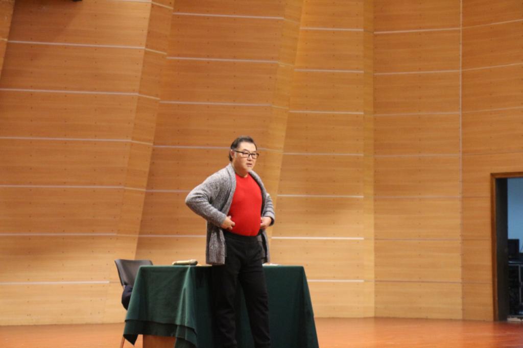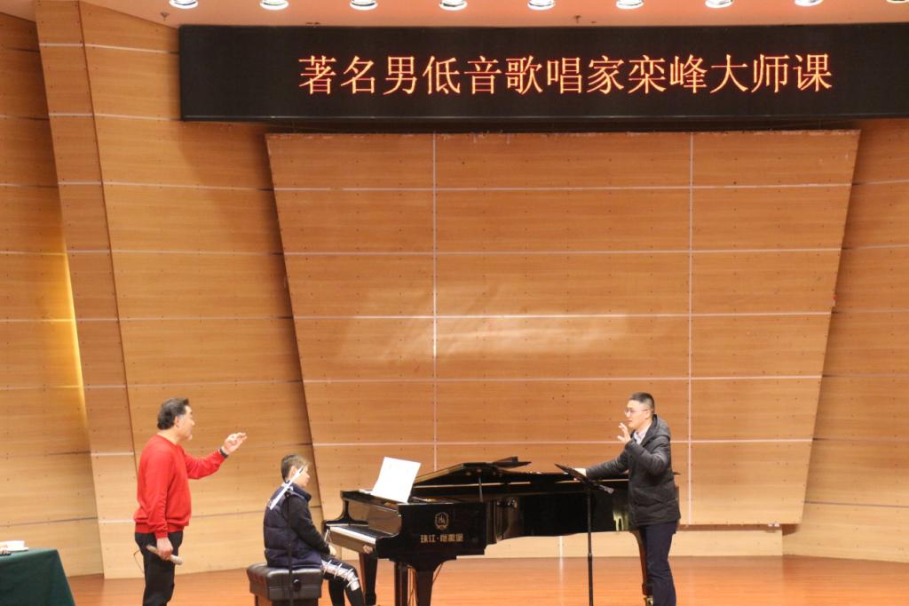 2019年11月21日,著名男低音歌唱家栾峰应PA视讯官网张礼慧教授邀请,在校友会堂音乐厅开展了题为 “歌唱教学前沿理论分析”与“歌唱实践技能训练与集体示范课”的声乐讲座。音乐学院部分师生以及参与中西部项目培训的音乐教师共同聆听了大师课。