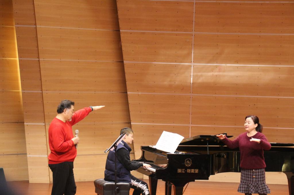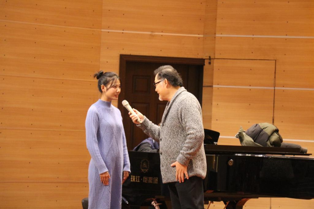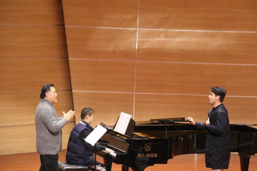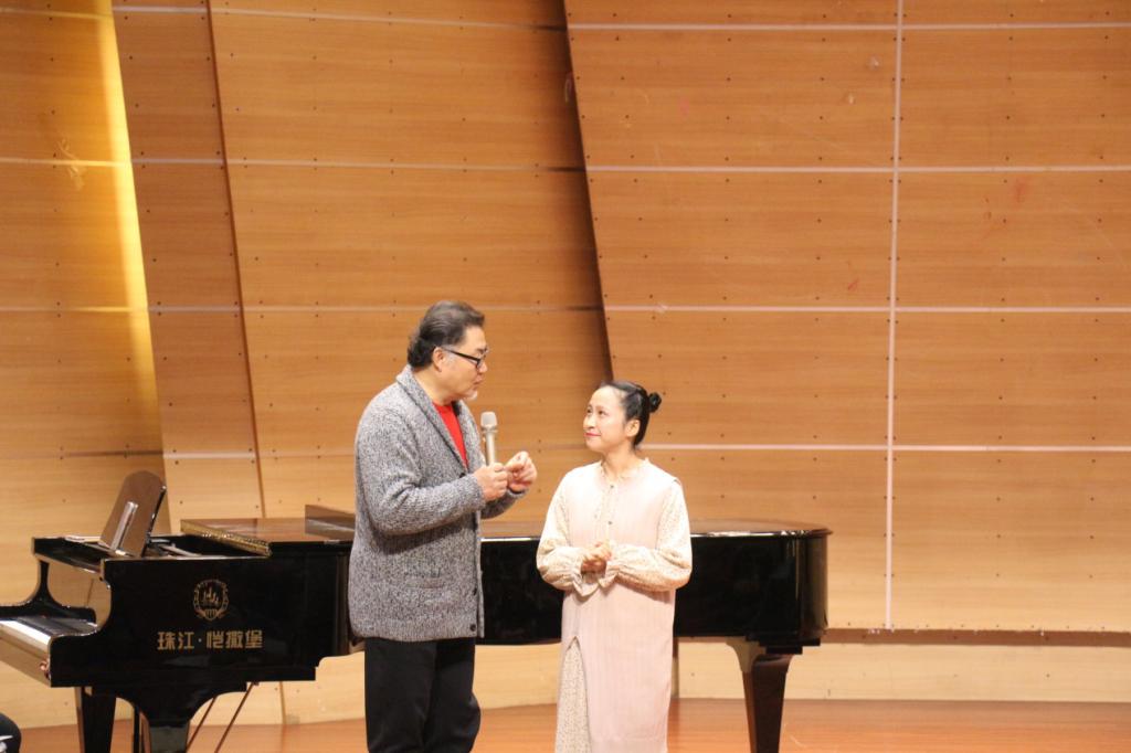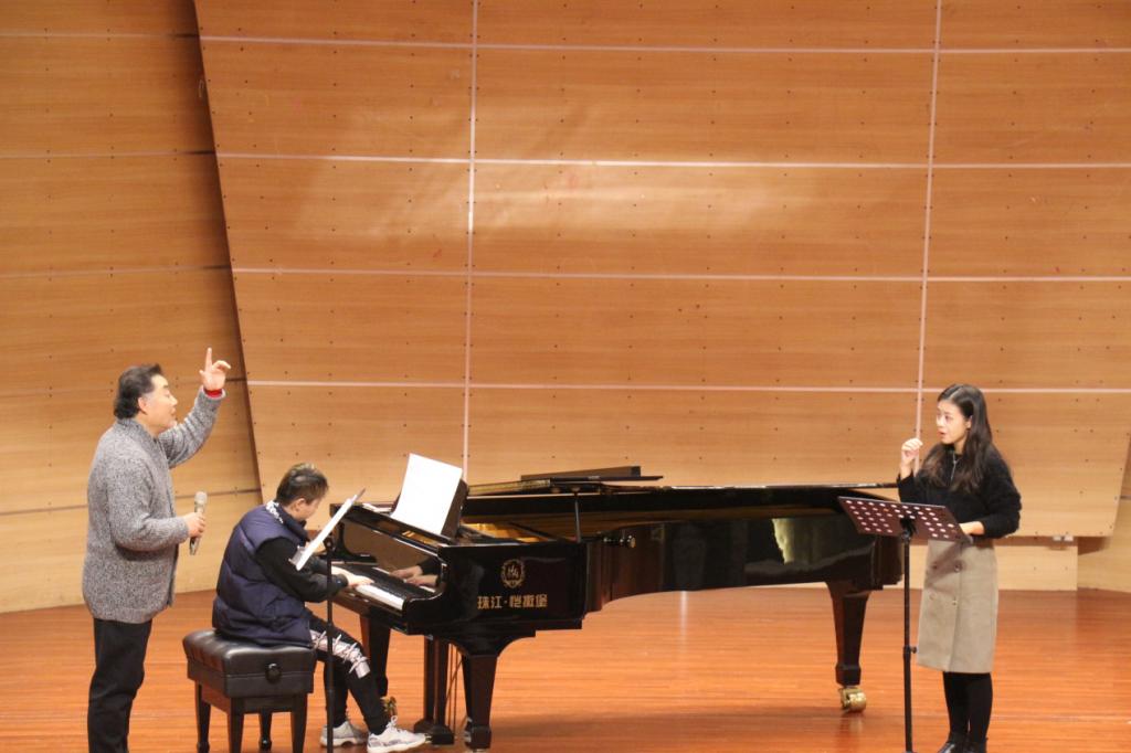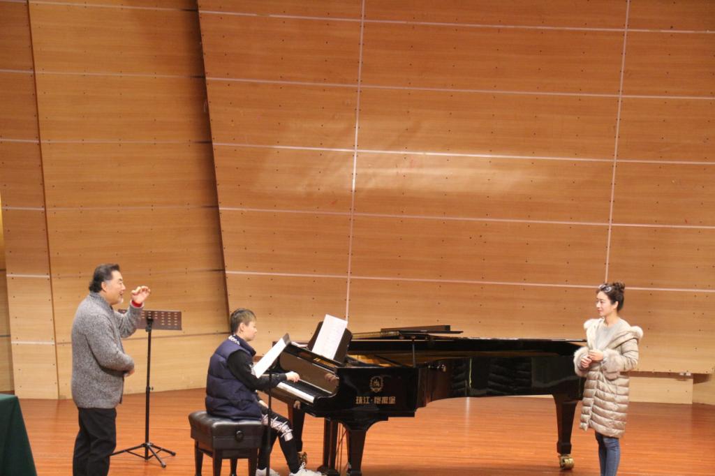 下午13:30,栾峰老师又在校友会堂音乐厅进行了理论与实践相结合的声乐教学,为登台演唱的音乐学院师生们处理声乐作品。音乐学院声乐教师王建树、林丹荔、魏扬以及部分本科生、研究生们参加了本次大师课,并演唱了作品。
