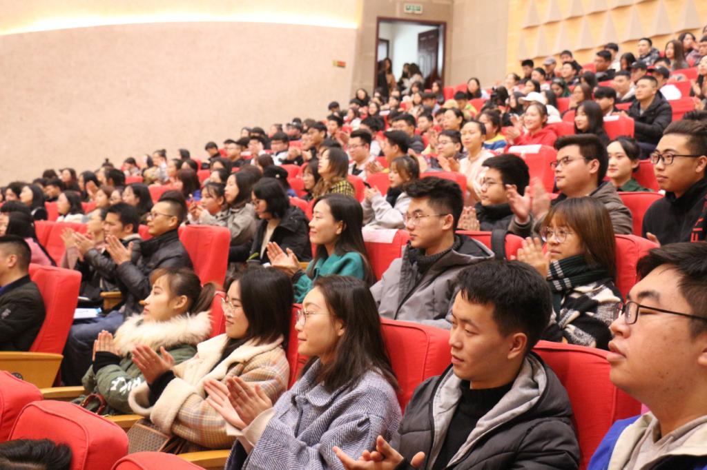 偌大的音乐厅内,每一位学子都专注的看着、聚精会神的听着,用心的感受着栾峰老师的声乐教学,并认真记下了笔记。在课程接近尾声时,栾峰老师还向在场的师生送上了美好的祝愿。