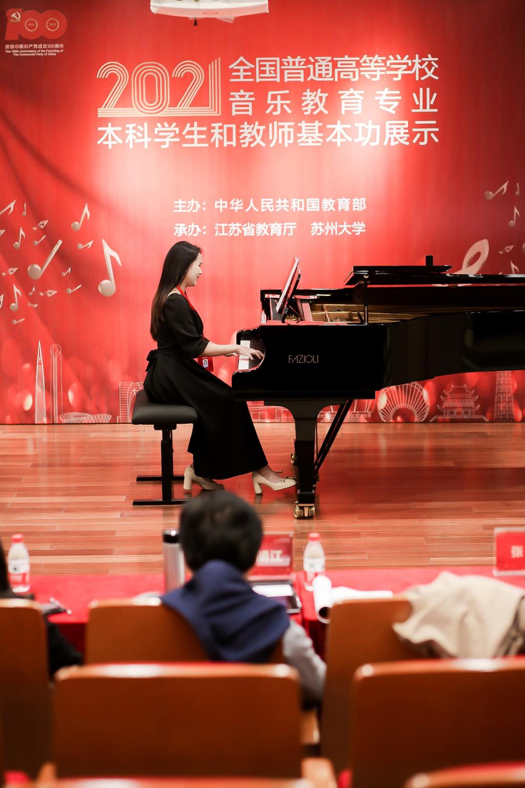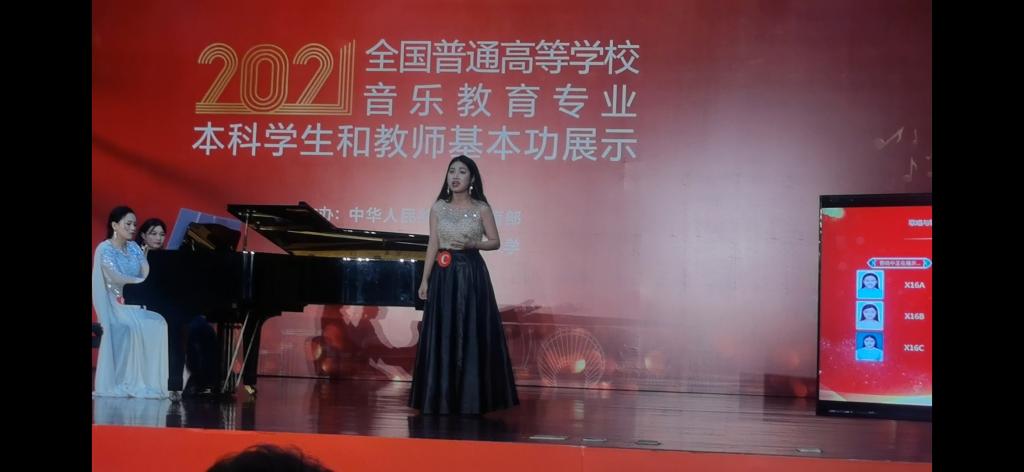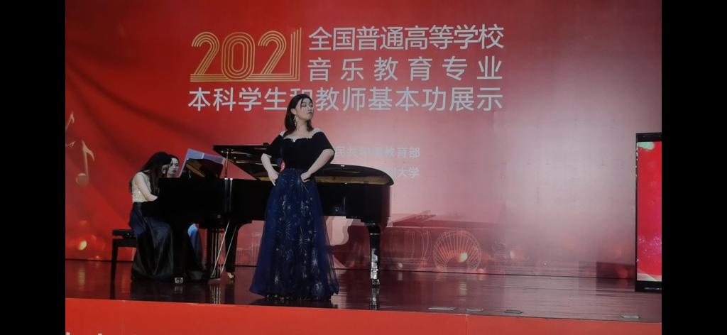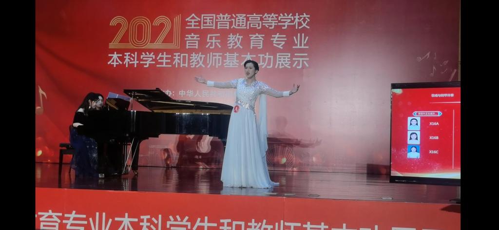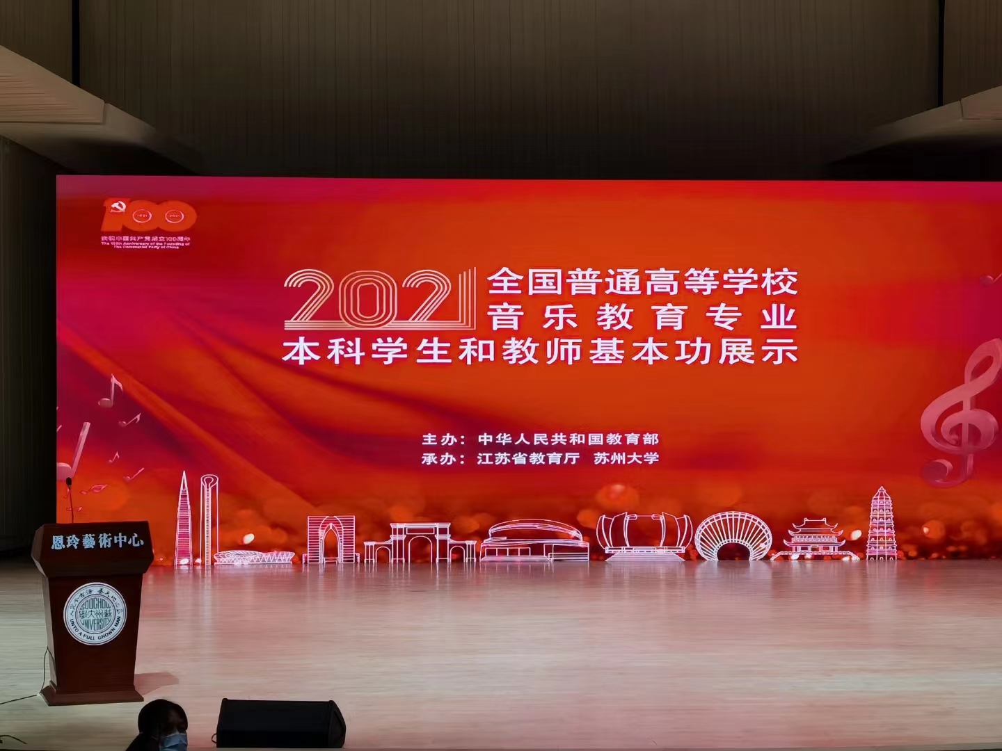 2021年10月18日-22日,由教育部主办、江苏省教育厅和苏州大学承办的2021年全国普通高校音乐教育专业本科学生基本功展示活动在苏州大学举行,来自全国31个省(市、区)和新疆生产建设兵团的65所高校的195名学生参加了展示活动。在近期公布的评选结果公示中,我校学生李诗悦获得了个人全能一等奖,罗小萱、郭静秋分别获得个人全能二等奖,李诗悦获得歌唱与钢琴伴奏及自弹自唱单项奖。学校获团体二等奖,在参加的65所高校中排名第十。