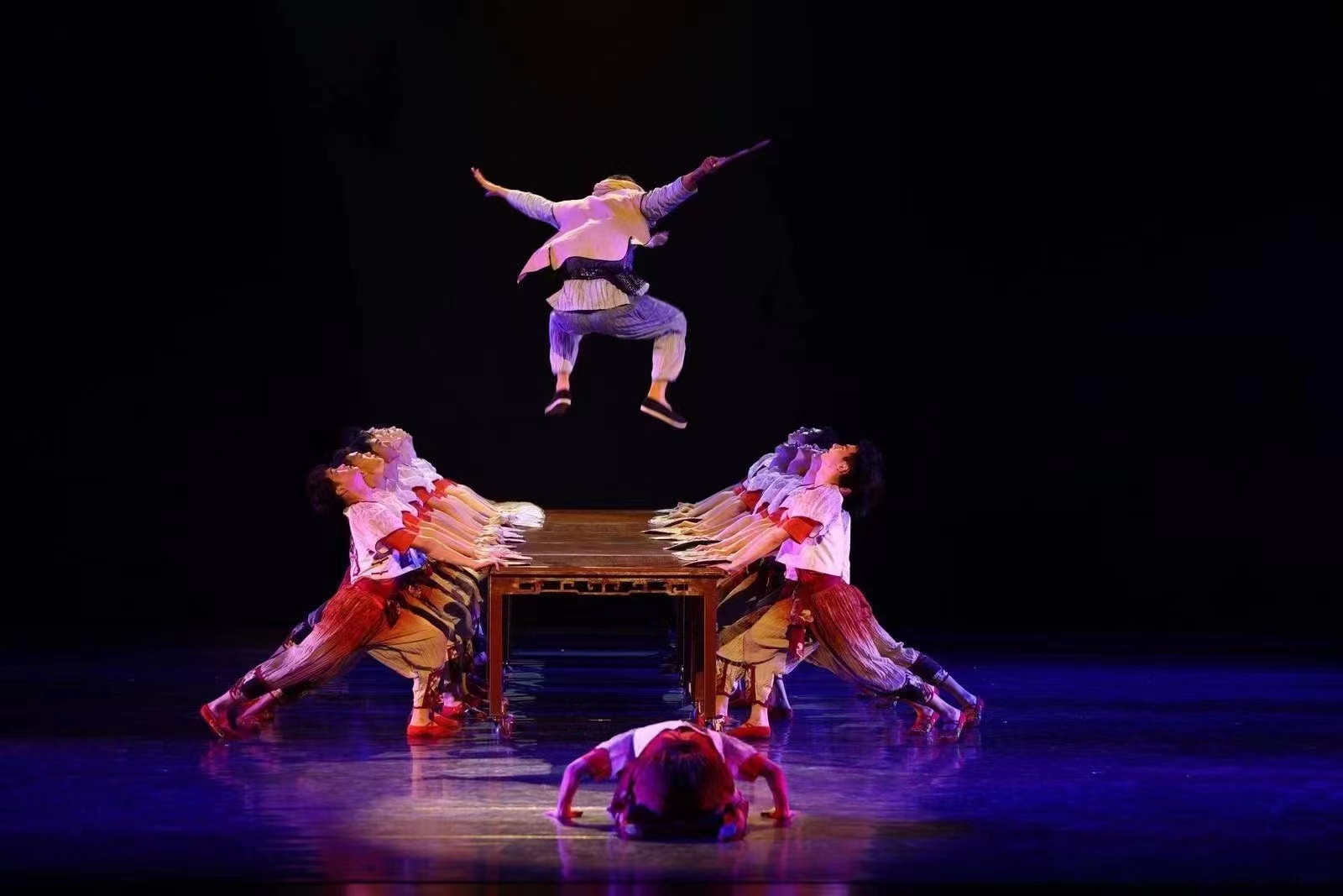 值得一提的是,该舞蹈融入并创新了秀山花灯中的另一大特色“高台”,舞蹈以“八仙桌”为道具,通过编导的创新性发展使这一民间表演中固定不动的“高台”在舞台上“活”了起来,舞者们在桌子上起舞,在有限的空间中展示高难度技艺,为观众带来视觉上的刺激。高台高,不仅是桌子摆放的“高”,也是技艺难度的“高”,更是对一代代非遗传承人品德“高”的赞美。