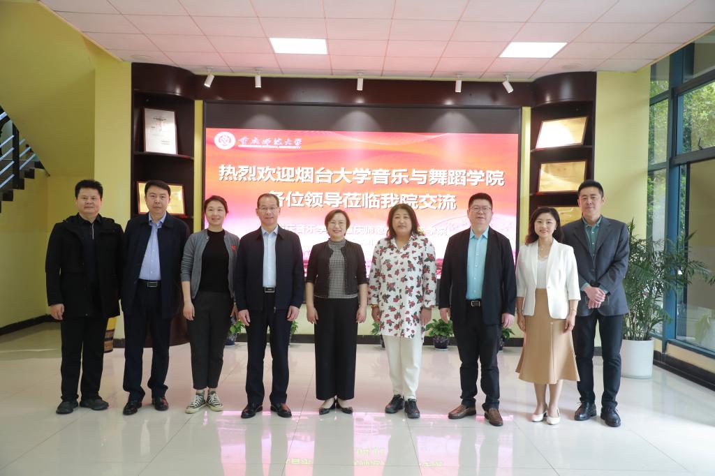 2023年4月11日,烟台大学音乐舞蹈学院院长邹淑珍, 副院长张文龙和周甜甜一行来我院调研交流。我院党委书记曾凡浏、副院长(主持工作)郑华、副院长吴伟、党委副书记宋雪飞和院长助理颜聪参加了调研交流。