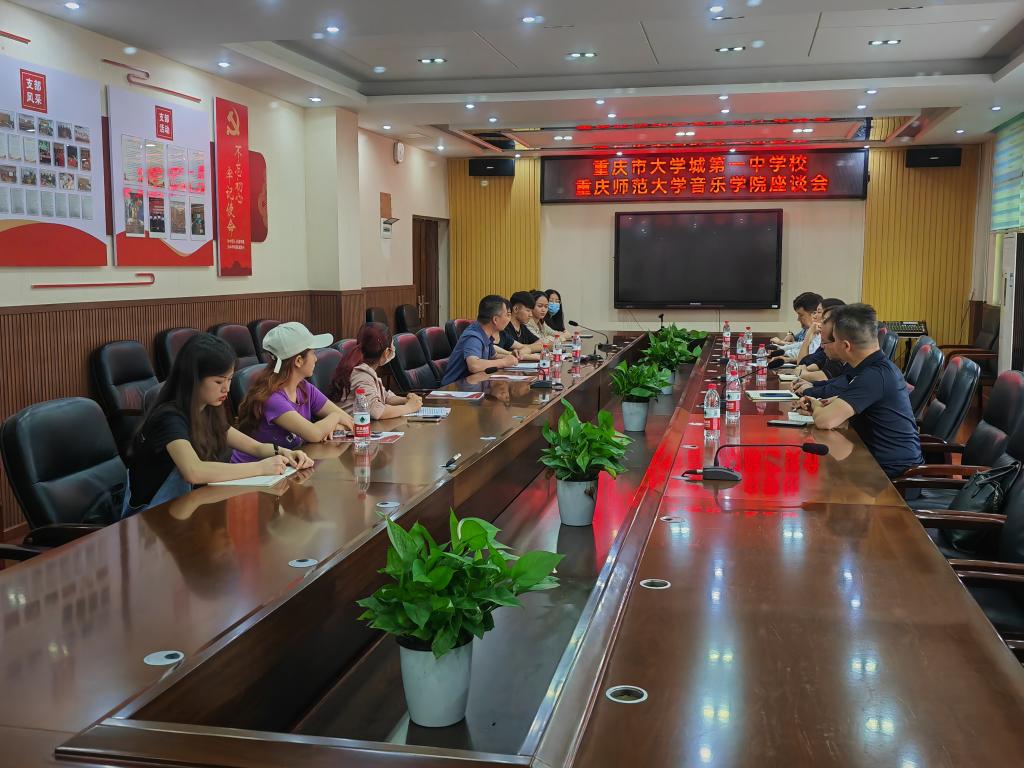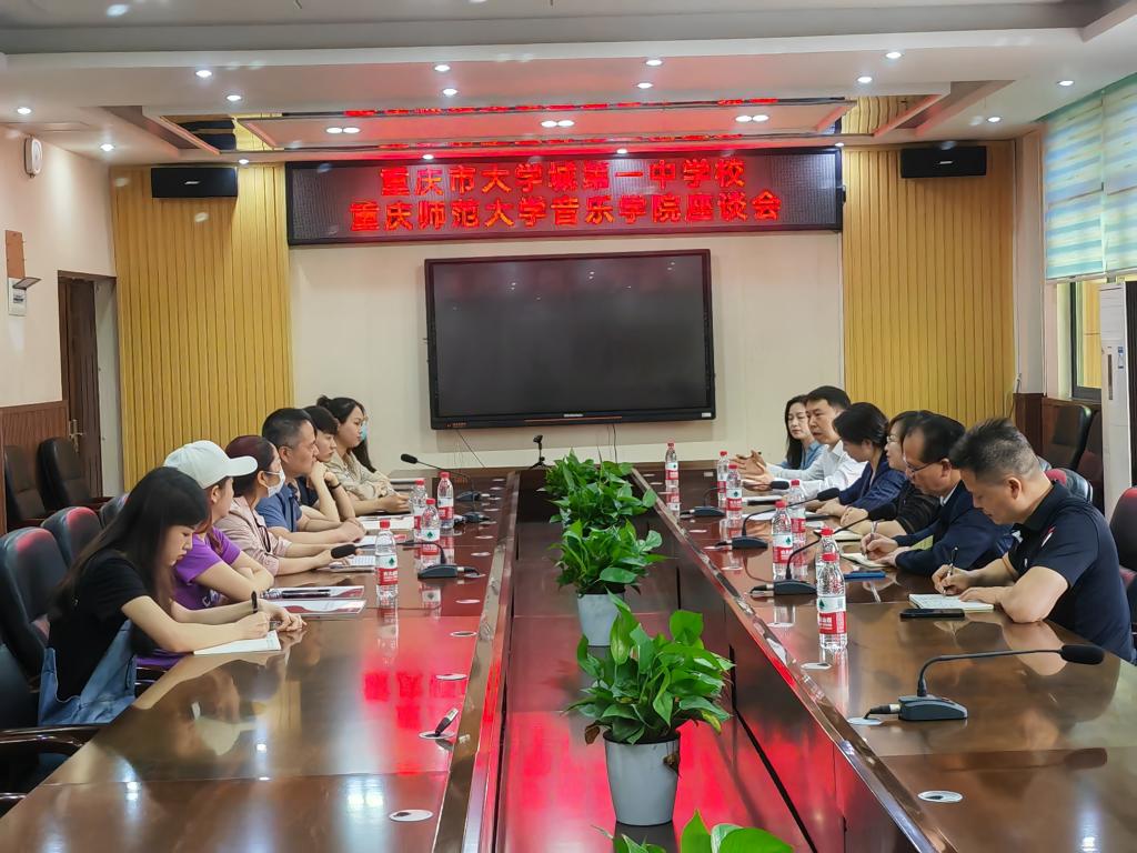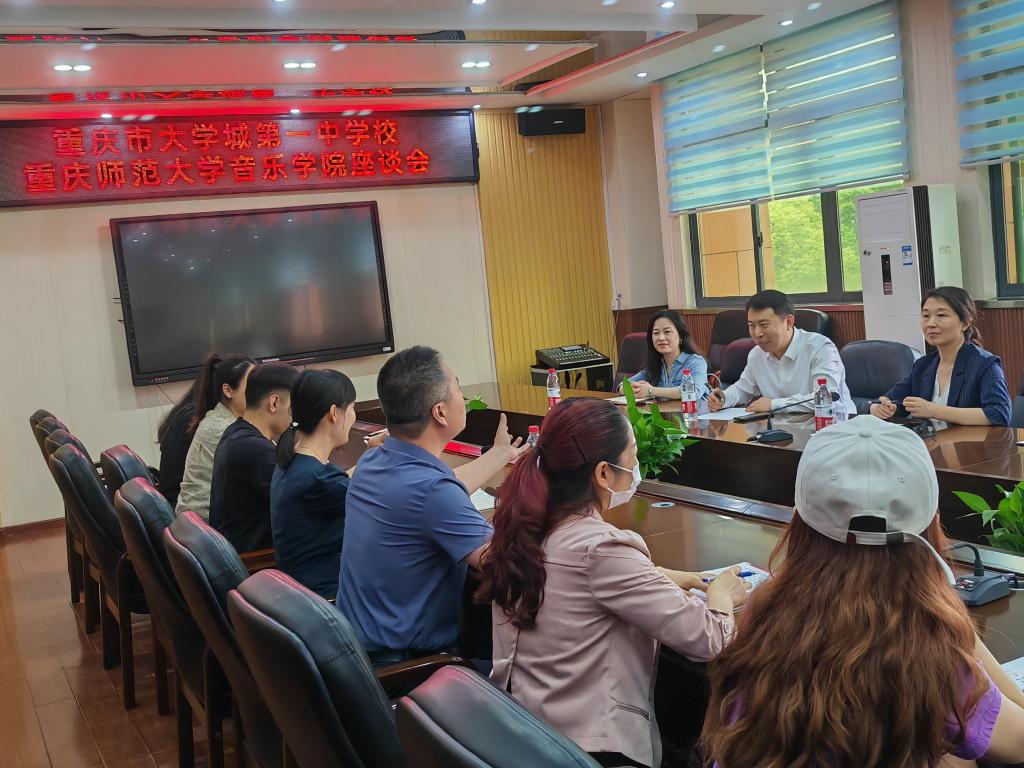 为了掌握学院实习生在实习期间的表现,加强学院与实习单位的交流沟通,促进实习管理工作的顺利进行,2023年5月18日9:00,PA视讯官网曾凡浏书记、郑华副院长(主持工作)、宋雪飞副书记、吴伟副院长、颜聪院长助理、音乐学系主任范元玲老师一行来到重庆市大学城第一中学(以下简称大一中)开展实习检查工作。检查工作中的座谈会上,音乐学院到场领导与大一中的校领导、指导老师进行了充分的交流和沟通,音乐学院大一中所有的实习学生参与座谈与交流。