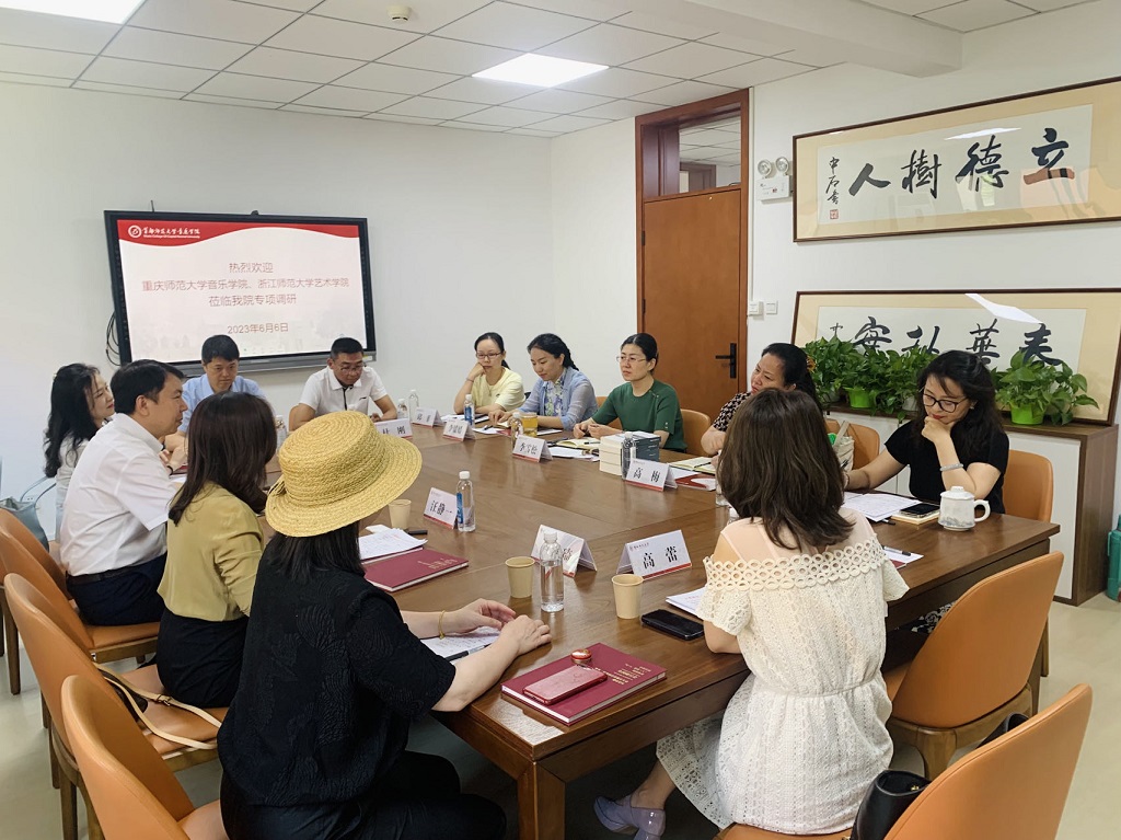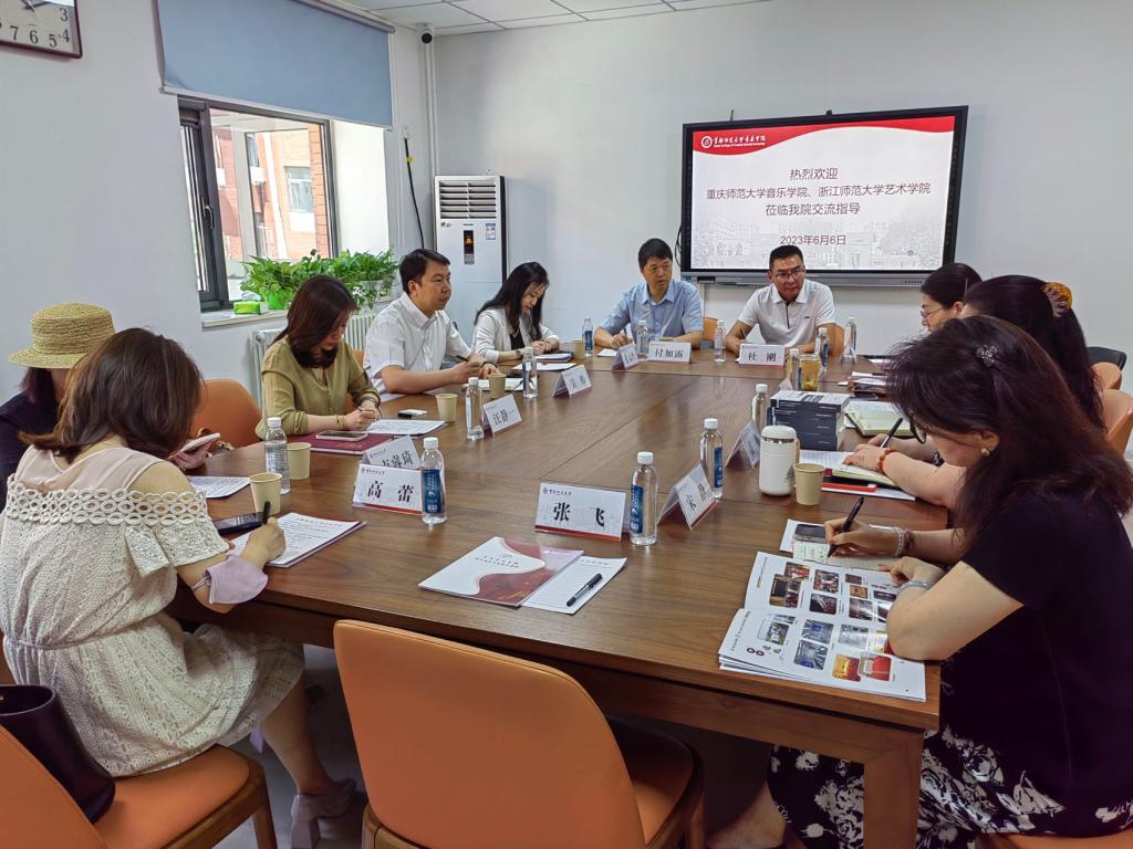 我院吴伟副院长和浙江师范大学艺术学院汪静一副院长对首都师范大学音乐学院表示衷心感谢,并分别对两院的情况进行了介绍。随后三方围绕学科建设、人才培养、课程设置、主题教育等工作进行了充分的交流,并对工作中的难点进行了讨论。