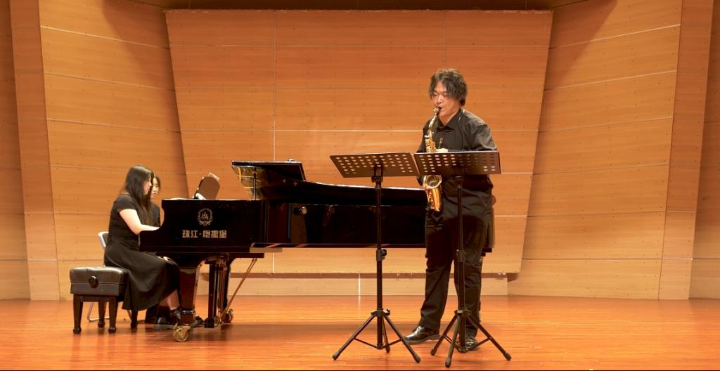 接下来,由王星然与周李芹宏演奏的《幻想曲》。此作品是美国作曲家克劳德.T.史密斯的风格在萨克斯上的完美体现,它华丽大气的旋律深受古典萨克斯管演奏者的喜爱。