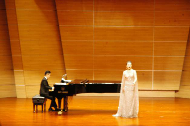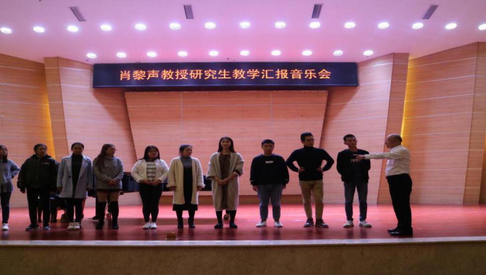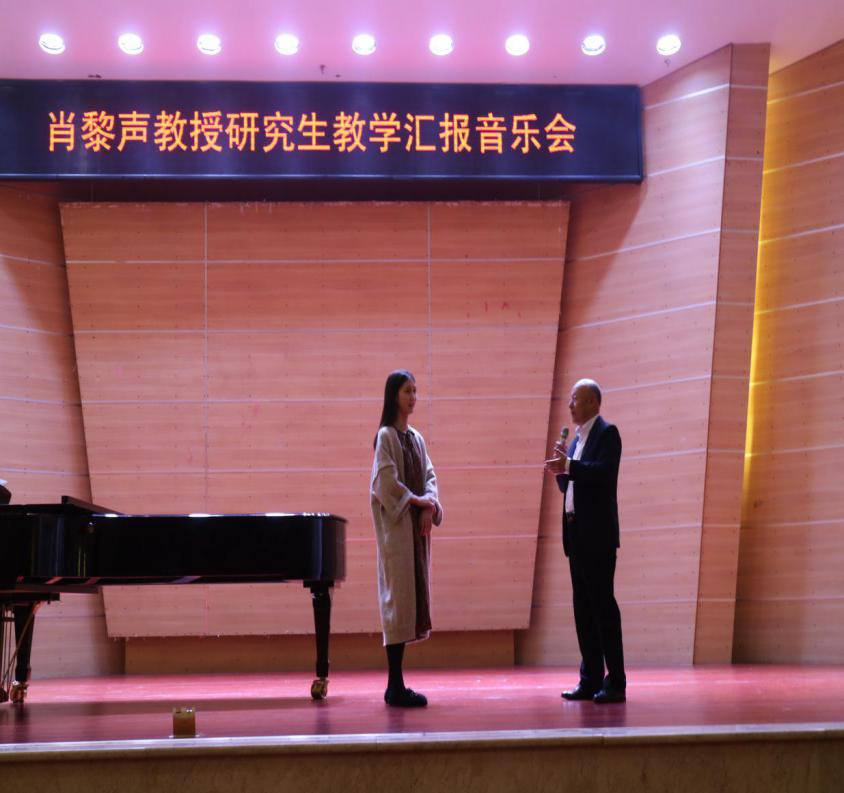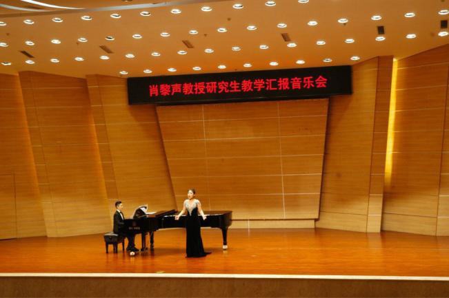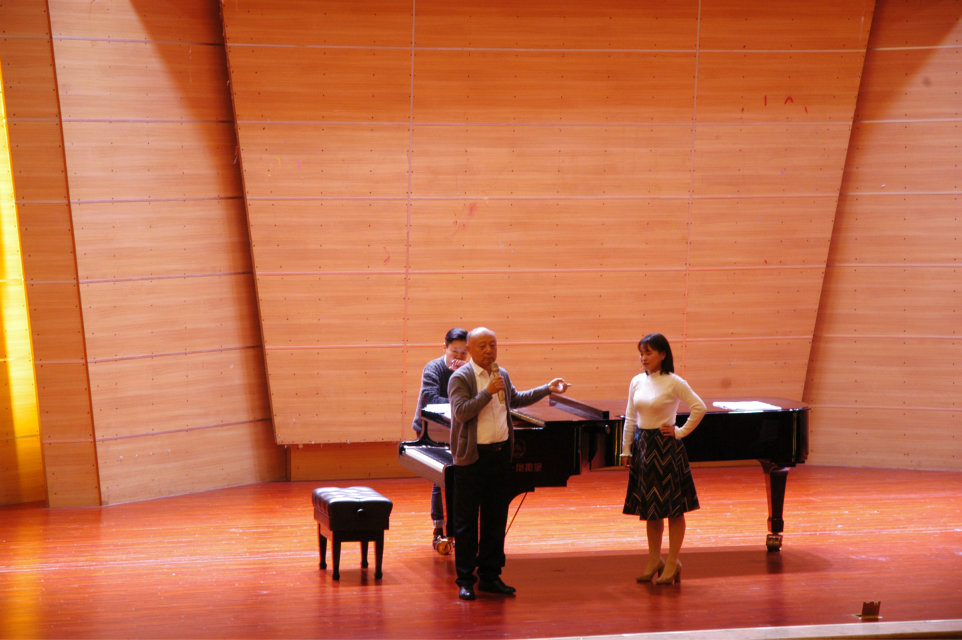 下午3点整,肖教授又在重庆师范大学校友会堂音乐厅内进行了理论与实践相结合的声乐教学。随后,肖教授开始为登台演唱的师生们上课,处理他们歌唱中的问题以及帮助师生处理声乐作品。音乐学院声乐老师林丹荔、吴洪远,研究生陈静、何莎莎等参加了大师课,并演唱了声乐作品。