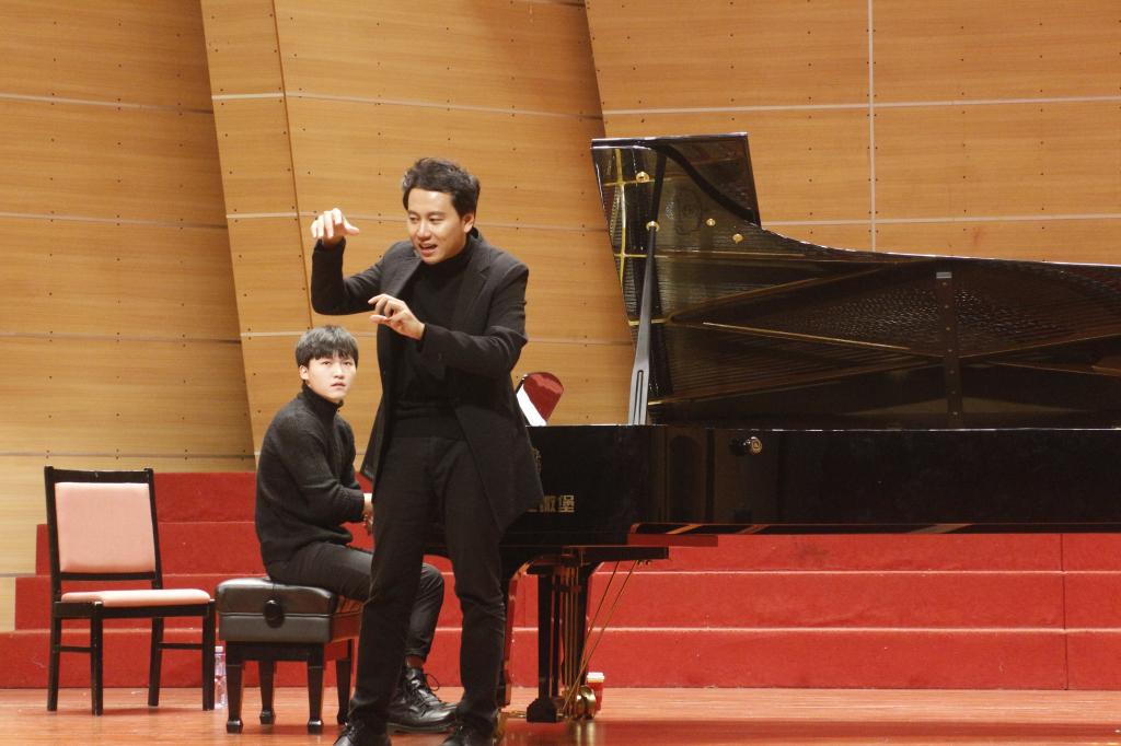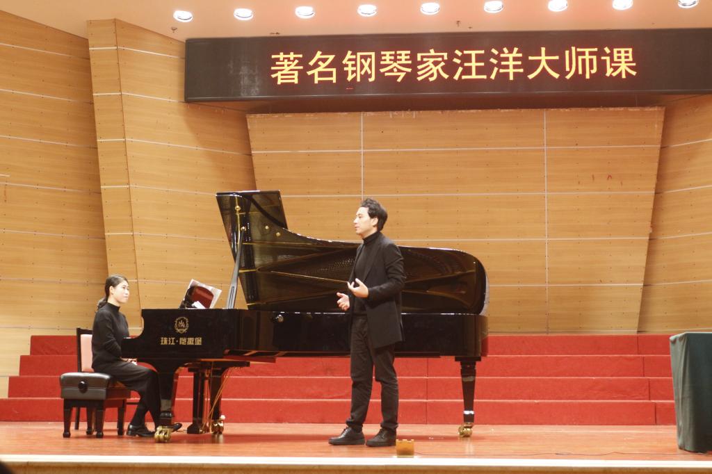下午2点,音乐学院钢琴表演专业和师范专业的同学在校友会堂音乐厅认真聆听汪洋教授的讲学。汪教授首先为大家做了简短的自我介绍,并分享了自己的求学历程及艺术成就。随后汪教授演奏了一首中国古典乐中的经典《春江花月夜》,并以丰富的表现力和演奏手法从不同角度为观众刻画出曲中有诗,曲中有画的场景及意境,不仅将大家带进此情此境中,同时也加深了同学们对曲子的了解。
