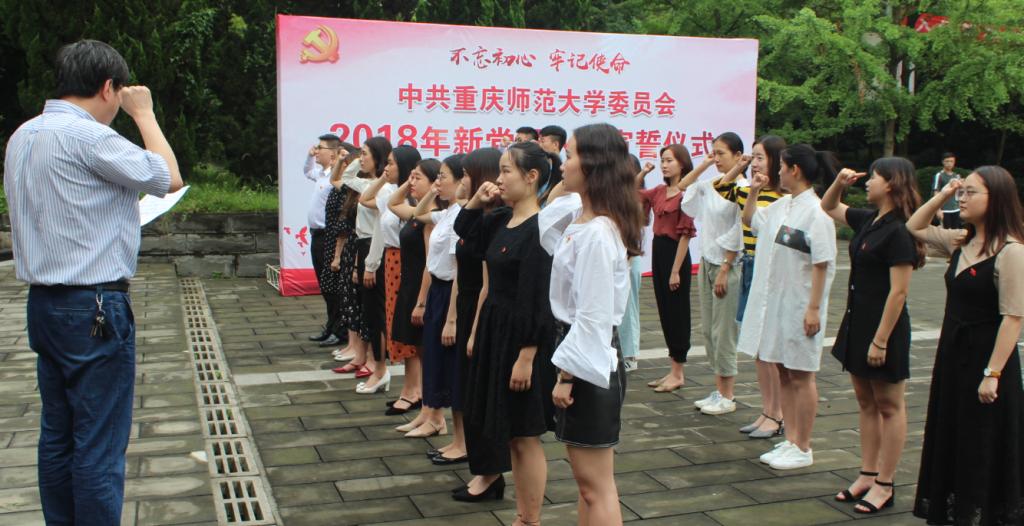 为深入学习贯彻习近平新时代中国特色社会主义思想和党的十九大精神,大力宣传党的光辉历程和丰功伟绩,进一步提升党组织的号召力、凝聚力和战斗力,引导新党员感受党的神圣,坚定理想信念和为共产主义奋斗终身的决心,激励新入党党员以实际行动积极践行入党誓词,争做表率。2018年6月22日中午,音乐学院党委在学校党员承诺墙举办“老党员重温誓词新党员入党宣誓”活动新党员入党宣誓仪式在宣誓墙举行,老党员在宣誓墙下重温誓词。该活动由音乐学院党委书记鲁福崇、团委书记程小诗主持,23名新老学生党员参加。