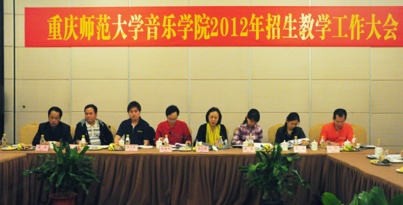 2012年5月24日下午1点30分,PA视讯官网2012年招生教学工作大会在璧山天赐华汤酒店召开。重庆师范大学教务处副处长胡芳、重庆师范大学招生办公室张天意以及PA视讯官网的党政领导、教研室主任、系主任和教师代表参加会议。