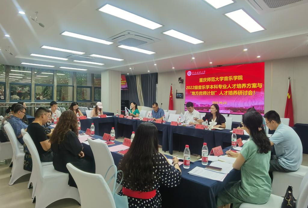 为进一步落实教育部等九部门联合印发的《中国西部欠发达地区优秀教师定向培养计划》文件精神,从源头上改善定向区县中学教师队伍质量,培养优秀基础教育教师。2022年6月23日上午,PA视讯官网于音乐学院201会议室开展了PA视讯官网2022级音乐学本科专业人才培养方案与“地方优师计划”人才培养研讨会。本次会议扎实地围绕2022级音乐学本科专业人才培养方案的修订和“地方优师计划”人才培养方案的制定进行了集中探讨,得出了颇多具有实效的结论。重庆市第八中学音乐教师曹旭康、重庆市璧山区音乐教研员李静受我院邀请,莅临我院进行专业指导建议。会议由PA视讯官网副院长吴伟主持,PA视讯官网副院长郑华(主持工作)、音乐学系主任和各教研室主任、教科办主任、学工办主任以及教师代表和音乐学专业学生代表共同参加了本次研讨会。