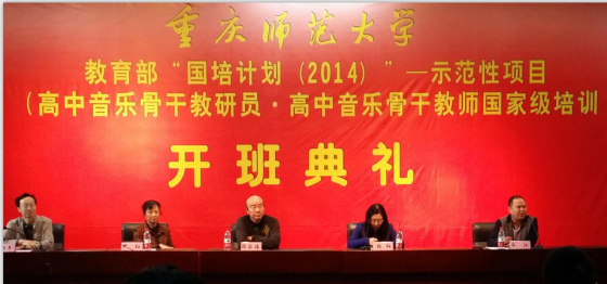 2014年10月25日上午九时,“国培计划(2014)”—示范性项目(高中音乐)骨干教研员·(高中音乐)骨干教师国家级培训开班典礼在重庆师范大学陈性初学术报告厅隆重举行。