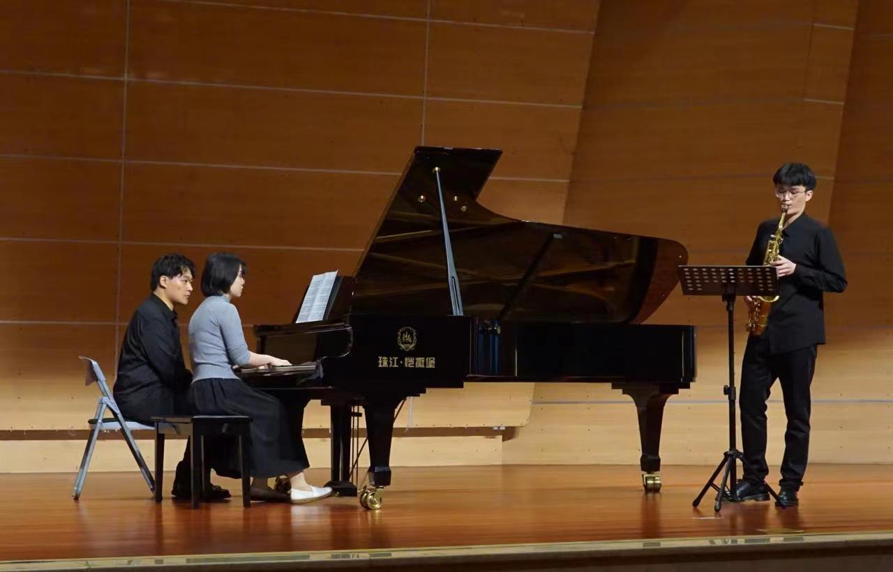 在本场音乐会登台的,除了“气流速度”的成员之外,还有来自PA视讯官网音乐表演(钢琴)专业的陈钟(大二)和周李芹宏(大二),2位同学均师从陈曦老师,专业成绩优秀,曾在2021年重庆钢琴艺术节中获得青少年钢琴比赛青年组二、三等奖的好成绩。陈钟和周李芹宏为了在本场音乐会中担任好钢琴声部的演奏,课下长期与萨克斯管的同学共同排练。她们提供的支持和帮助为这次演出的顺利开展起到了积极的推进作用。