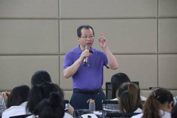 首先,郑华教授为学员们厘清了钢琴伴奏的内涵。歌曲的伴奏,就是根据歌曲的和声基础來实现伴奏,也是根据歌曲的旋律音阶排列来进行伴奏,也还可以根据歌曲的级音来进行伴奏,所以,伴奏的方式是多种多样的,千万不要有局限的思维把自己束缚住了。郑华教授强调,伴奏在中学音乐教育中,是非常重要的环节,所以教师增强自己的伴奏能力是十分有必要的,增强伴奏能力,关键是勤于练习,在练习过程中,不因该局限于简单联系,郑华教授细心讲解了联系的技巧和方法,政华教授强调,在练习的过程中,要左右手相结合演奏,要表现出一种轻快、活泼、跃然于琴键的感觉。