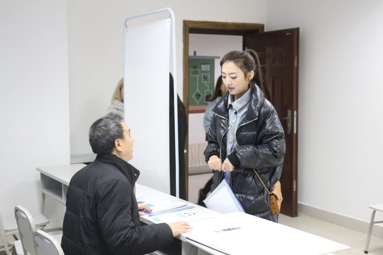 (毕业生们认真进行面试)