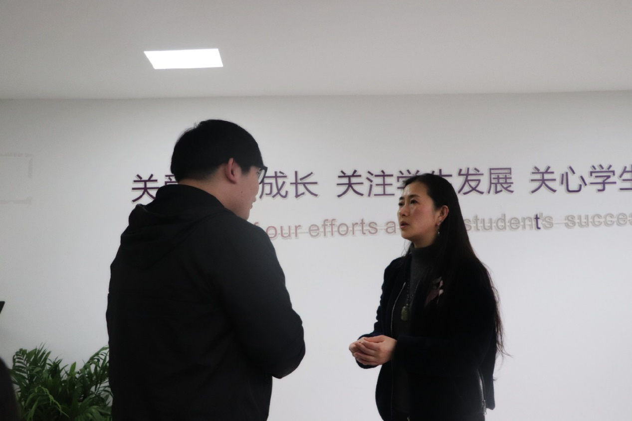 学院领导高度重视毕业生就业工作,招聘会期间,党委副书记文琪携2016级辅导员程小诗老师以及2019级辅导员杨理老师来到招聘会现场与用人单位沟通交流,详细了解用人单位招聘情况和需求,鼓励毕业生主动应聘,现场对学生进行指导。