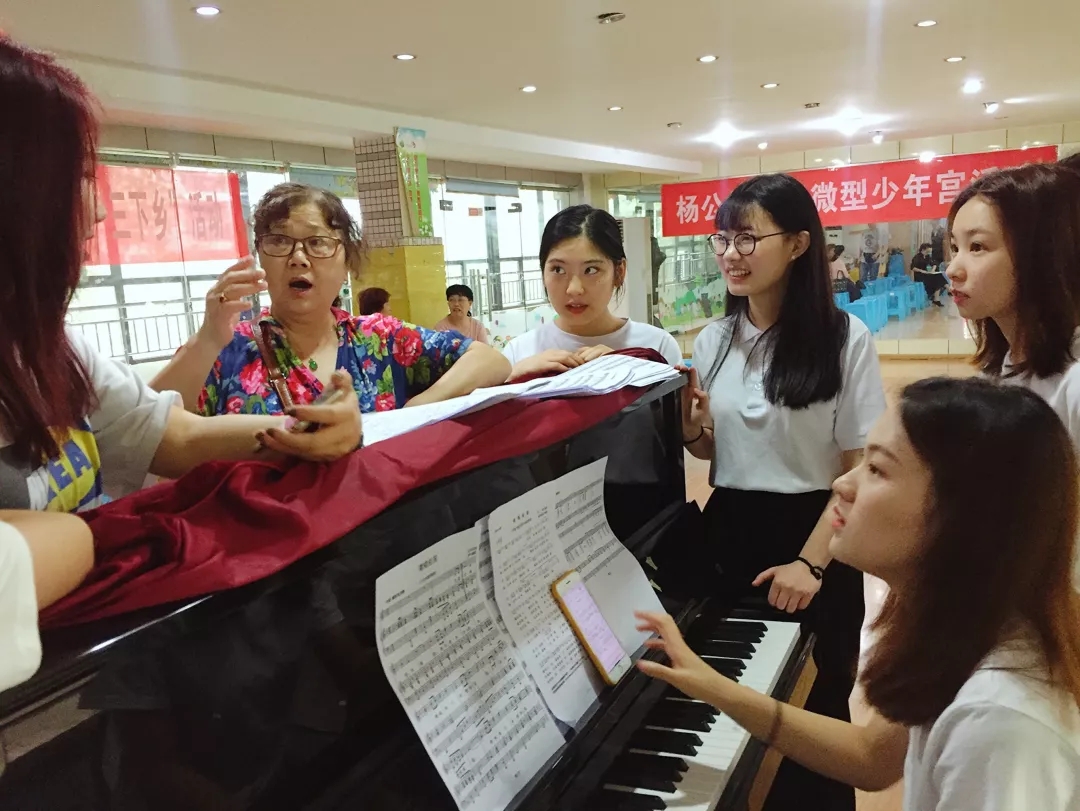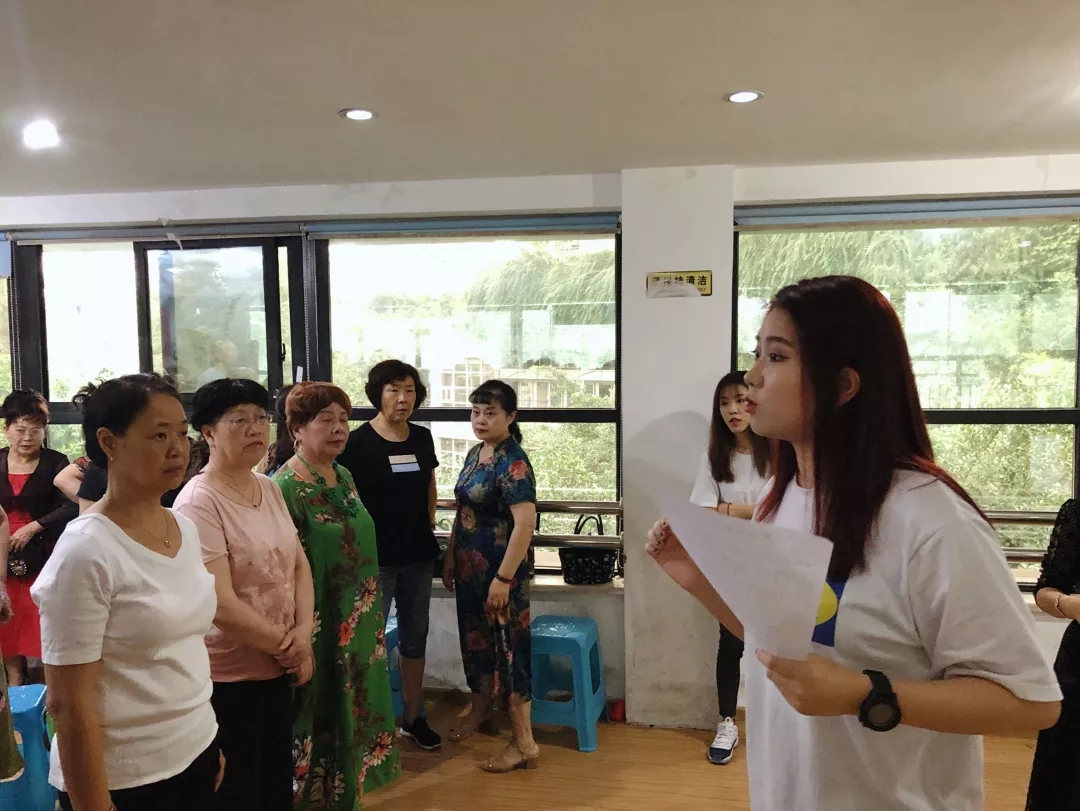 2019年7月9日早上8:30,重师音乐学院“三下乡”——“多彩国韵,乐动芳华”小分队,带着期待和激动的心情走进沙坪坝区渝培路杨公桥社区服务中心,为社区的老人们上了一堂声乐教学课。