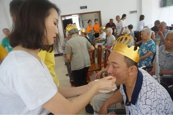 在活动准备前夕,志愿者们与养老院院长沟通时了解到,活动当天恰巧有几位老人同一天生日。所以节目表演完以后,志愿者们为老人们过了一场难忘的生日。志愿者们为过生日的老人们戴上生日帽,在蛋糕上插上蜡烛,然后为他们唱起了生日快乐歌。烛光把老人们的脸庞映得格外灿烂与幸福,大家在一起有说有笑,其乐融融。活动结束后,老人们都表示很开心,并且希望以后能够多举办这样的活动。