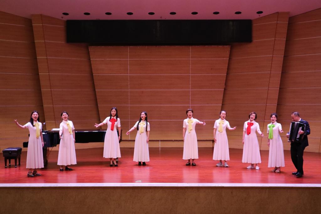 随后,全体领导班子邀请吴院长到校友会堂音乐厅参观了管乐团、合唱团的排练,并欣赏了张礼慧院长同学生即兴表演的声乐歌曲《感恩》以及孙伟副院长同学生即兴表演的手风琴伴奏小合唱《山楂树》和《喀秋莎》。张院长谈到,每年的4月至7月是音乐学院三春湖之韵系列演出季的时间,学院通过这种形式感谢师生共同付出,也希望学生用自己的专业知识回报社会、感恩生活。