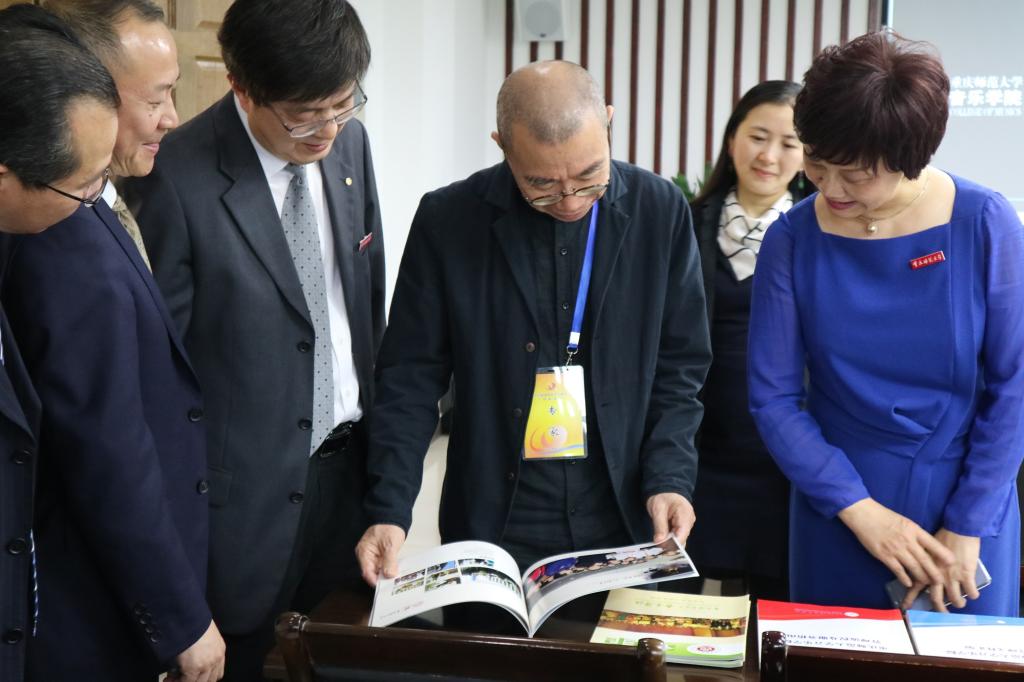 张院长表示,音乐学院经过近二十年的发展已经逐步建成四个本科专业,突破音乐学与舞蹈学一级学科的瓶颈,逐渐走出了音乐舞蹈并行发展、师范非师范两轮驱动的发展态势,并表示将携手全体师生为建成特色鲜明、西部前列、国内有重要影响力的高师音乐学院而努力!吴院长对我院的办学条件和校园环境建设、办学定位和成果、发展规划和举措等给予了充分肯定,并针对科研工作以及科研成果转化为教学成果提出了宝贵的意见。