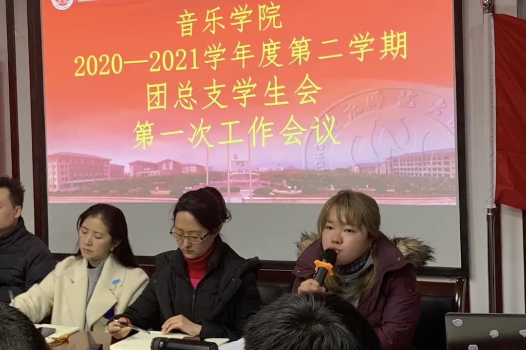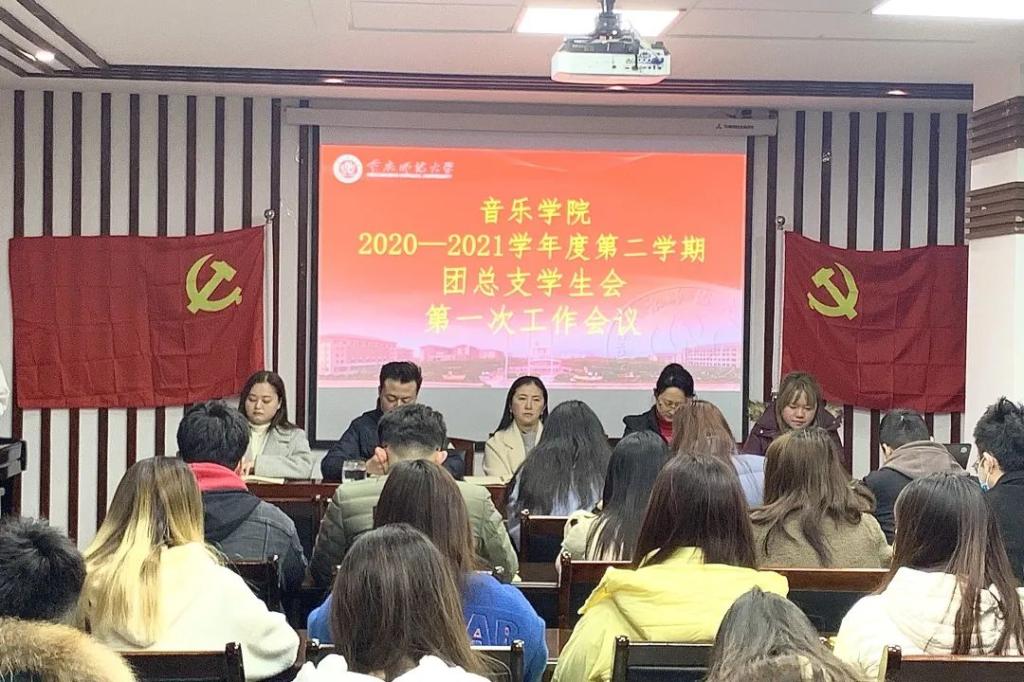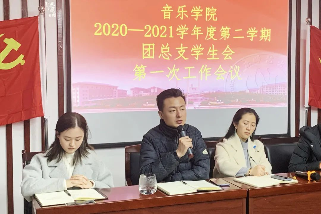 2021年2月28日上午10:00,PA视讯官网2020-2021学年度第二学期学生干部集中大会于音乐学院办公楼二楼会议室顺利举行。音乐学院党委副书记文琪、团委书记兼学工办主任程小诗、17级辅导员晁成、19级辅导员杨理以及18级代理辅导员刘佳出席了本次会议。音乐学院第十九届学生委员会主要干部以及各班级的主要班委共同参与了此次会议。