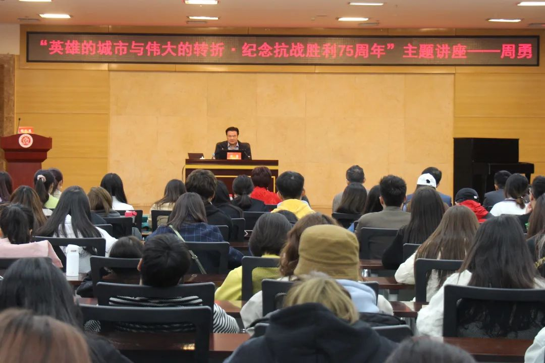 讲座伊始,周勇教授以习近平总书记在纪念全民族抗战爆发七十周年仪式上的发言——“历史是最好的教科书,也是最好的清醒剂”指出了了解历史对当今和平时代生活的重要性,并引入了开展本次讲座的目的——“铭记历史、缅怀先烈、珍视和平、警示未来。”