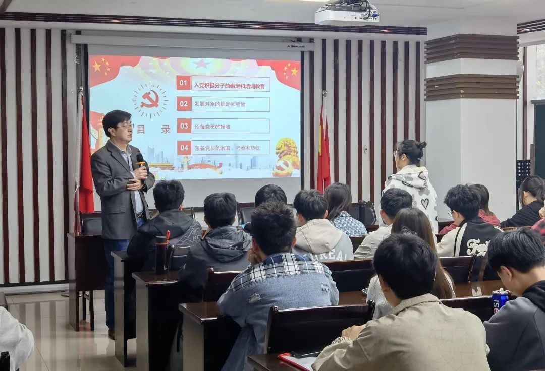 鲁福崇老师从四个方面详细介绍了入党流程:(一)入党积极分子的确定和培养;(二)发展对象的确定和考察;(三)预备党员的接收;(四)预备党员的教育,考察和转正。