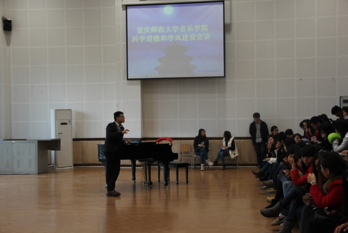 - 科学道德和学风建设宣讲教育11月7日中午13:00,在余鹏江老师带领下10级师范班、表演班和11级师范班的同学们在艺术大楼8455对科学道德和学风建设的认识进行了交流。此次讲座的目的是希望学生们能诚信做人,要对社会、对家庭、对学校、对自己有责任感;要明白在学校的主要目的是学习,同时也要遵守学校规定,尊敬老师,真正的把大学当成是一个可以学习到知识的地方。随后,各班依次汇报了对科学道德和...
