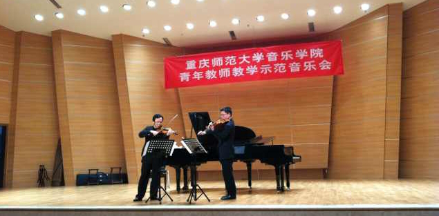 - 教学示范技能展示——记音乐学院青年教师教学示范音乐会(钢琴、器乐专场)2012年12月3日晚七点,我院青年教师教学示范音乐会在校友会堂音乐厅拉开帷幕。张礼慧院长、齐江副院长、文琪副书记、郑华等老师光临了本次音乐会,同学们争相前来观看,音乐厅里座无虚席,使得本次音乐会非常温馨。音乐会由刘虹同学主持。本次音乐会由我院青年教师和部分优秀学生共同演奏,音乐会由刘凯、汪洋两位老师带来的亨德尔作...